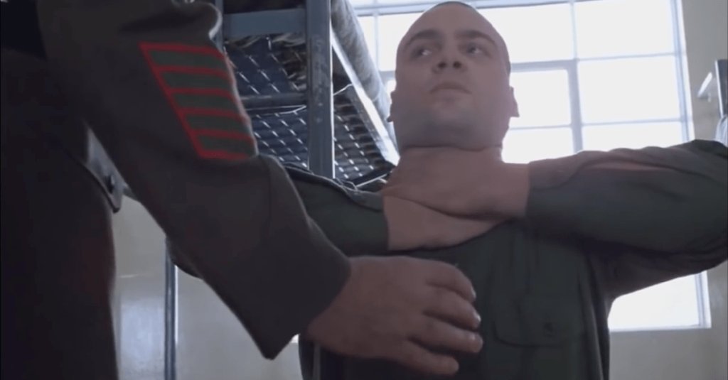 Stanley Kubrick was a fan of showing as much mental and physical torment as he could possibly pack into 1987’s “Full Metal Jacket.” It’s been said several times that this film was as true to life for Marine boot camp as it got. So you can bet that there has been a recruit or two that has been in a Marine drill instructor deadly grasp.