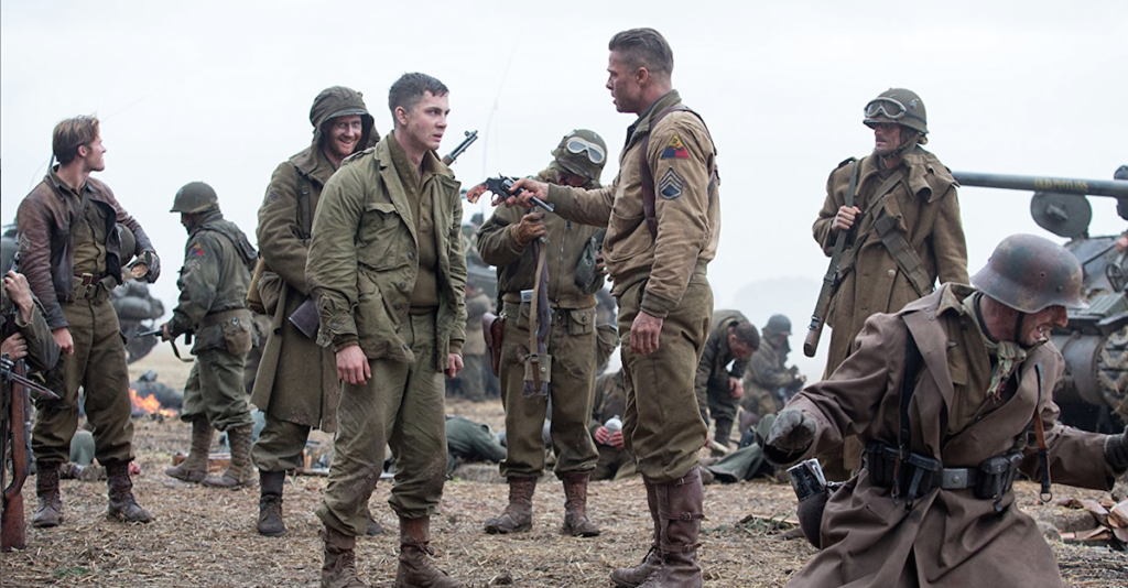 Remember when War Daddy jumps out of a tank and kills that German soldier riding a white horse? Well, that opening scene takes place in the ruins of what appears to have been an epic battle. We also learn that a member of the crew fell in battle, but we don’t get much more information than that.