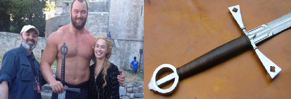 The Mountain, being the strongest man in Westeros and the strongest man on Earth, would need an equally powerful weapon. What stands out about Gregor Clegane’s weapon is the pommel. It’s a symbol common among Irish long swords. It’s also featured prominently in the show as well in Sansa’s necklace as well as Cersei. Just throwing that out there…