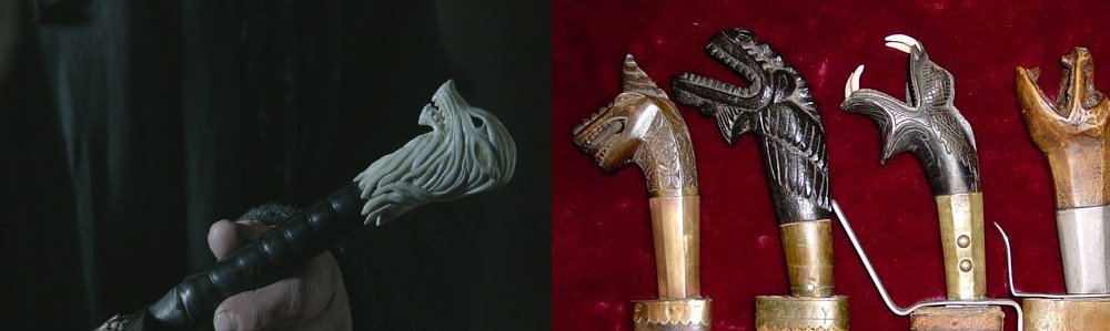Of course, Non-Valerian steel swords like Jon Snow’s exist, and having animal designs on the pommel are nothing new, but the devil is in the details of pinpointing specifically where they originate.
