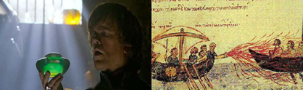 The Wildfire used by the Lannisters is devastating. It won the Battle of Blackwater Bay and blew up the Septum. An extremely early version of a napalm thrower was used by the Byzantines for naval combat as early as 672.