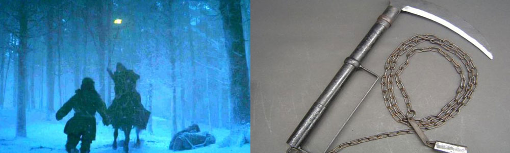 The closest to reality that Benjen uses is perhaps a variation of the kusarigama, a weapon synonymous with another historically debatable group: ninjas.