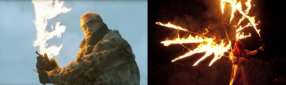 Beric’s flaming sword is a circus performer’s sword… and, uh, this guy’s sword…