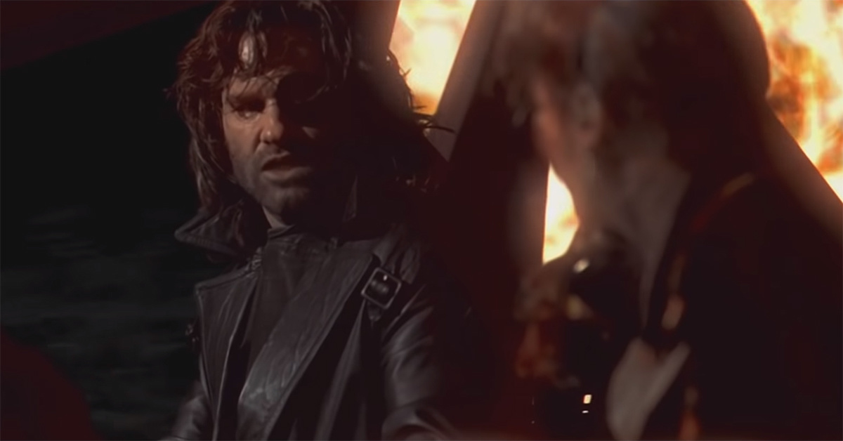 Snake Plissken is the only one who can get people out of dangerous, crime-ridden cities. Maybe because he’s the only one who is this calm while his helicopter is on fire.