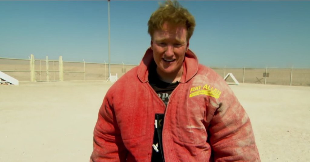 Late night host Conan O’Brien visited with Air Force working dog handlers and got into all sorts of shenanigans. He joked with the handlers, watched the dog chase down a suspect, and even tried to out-dog the Air Force’s canines.