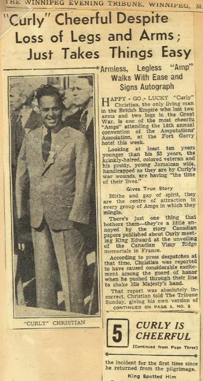 Ethelbert “Curley” Christian was the first and only surviving Canadian quadruple amputee of the First World War.