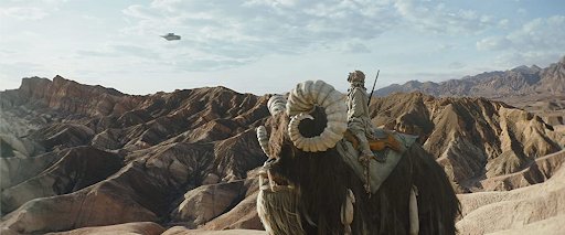 Except for the krayt dragon (and shame on writer/director Jon Favreau for using the peaceful-minding-its-own-business Bantha as the butt of a joke when its eaten by the dragon). Djarin and Vanth strike a deal: if Djarin helps kill the krayt dragon, Vanth will give up the armor. Djarin negotiates an uneasy peace with local Tusken Raiders and the people of Mos Pelgo and they lay their plan: bury explosives in the ground and lure the krayt dragon over the explosives to destroy it at its vulnerable belly.