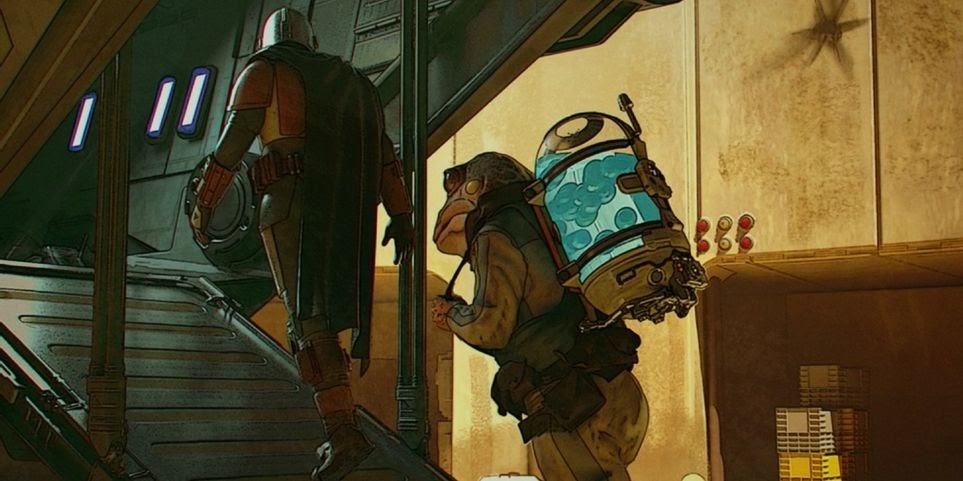 Djarin is still searching for some Mandalorians and conveniently, Peli Motto (Amy Sedaris) just met a creature who has a lead. “The Frog Lady,” as she’s credited, needs secure passage to rendezvous with her husband in The System in order to fertilize her eggs — and in exchange, her husband will tell Djarin where he might find a Mandalorian cohort.