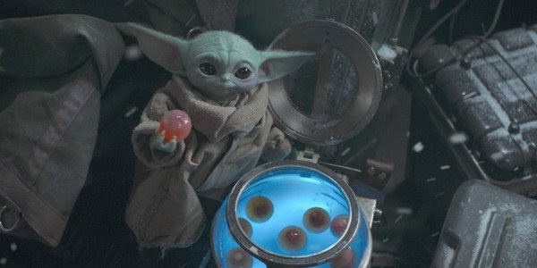During their space flight, Djarin and his cargo were intercepted by two New Republic X-Wings who started asking too many questions for Djarin’s comfort. In an effort to evade them, he crashed on an ice planet, wrecking the hull of his Razor Crest. While he sought to repair it, his cargo made some decisions.