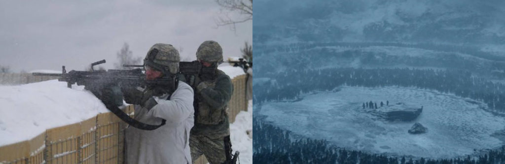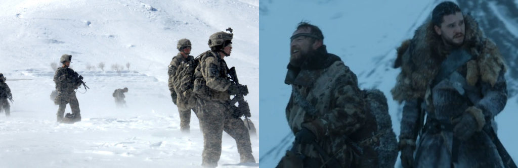 As the team of badasses move through the frozen north, they generally maintain Condition: Yellow. Tormund may be joking about his three best ways to keep warm, but he’s still eyeing his surroundings.