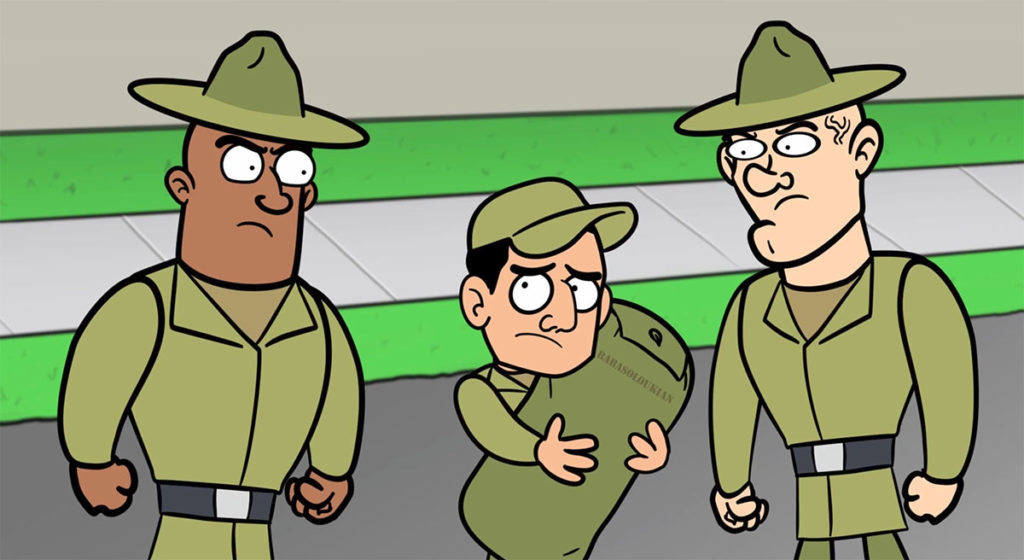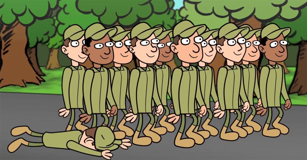 Babasoloukian — aka “Babalou” — tells a story that illustrates how easy it is for trainees to fall into traps set by their drill sergeants…or just actually fall…even when they’re told specifically not to fall (common sense would suggest that you wouldn’t have to tell someone that but…boots amirite?)
