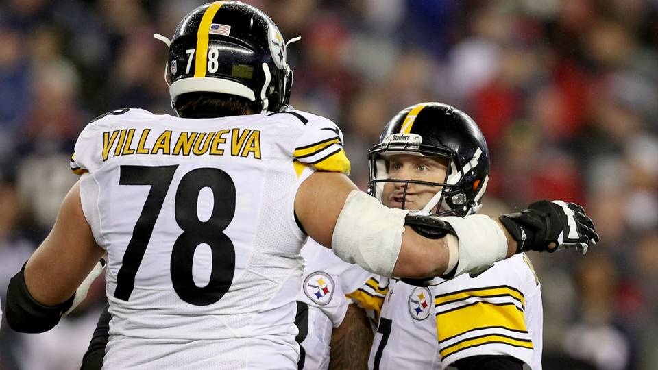 On the field, Roethlisberger looks like he lives up to the nickname “Big Ben.” The Steelers QB is 6’5″ and 240 pounds, cutting a unique outline on the playing field. In comparison, Villanueva is 6’9″ and 320 pounds.