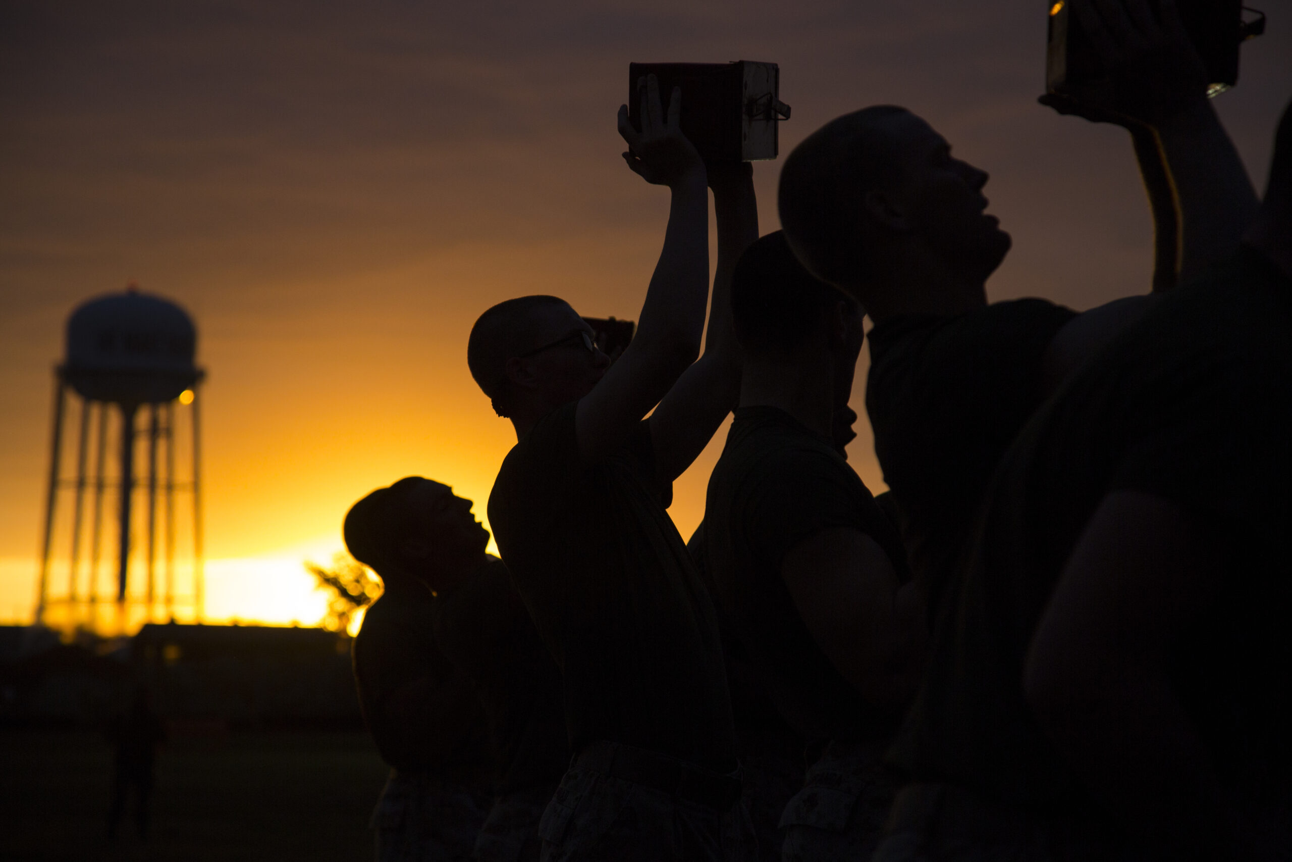 The Marine Corps Combat Fitness Test, or CFT, measures functional fitness and simulates the demands of battle in full combat utility uniforms. The three parts of the CFT are Movement to Contact, Ammunition Lift, and Maneuver Under Fire. The Movement to Contact drill is an 880-yard sprint that mimics the stresses of running under pressure in battle. In the Ammunition Lift, Marines must lift a 30-pound ammunition can overhead until their elbows lock out. The goal is to lift the can as many times as possible in a set amount of time. The Maneuver Under Fire is a 300-yard course that combines a variety of battle-related challenges, including crawls, ammunition resupply, grenade throwing, agility running, and the dragging and carrying of another Marine.