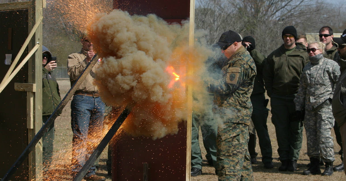 Often referred to as a “lightsaber,” this device is the TEC Torch. It’s a breaching tool created by the Air Force that generates a 5,000-degree flame that can slice through steel in seconds. The TEC Torch was created at the request of special operations forces and works using cartridges that last for two seconds each.