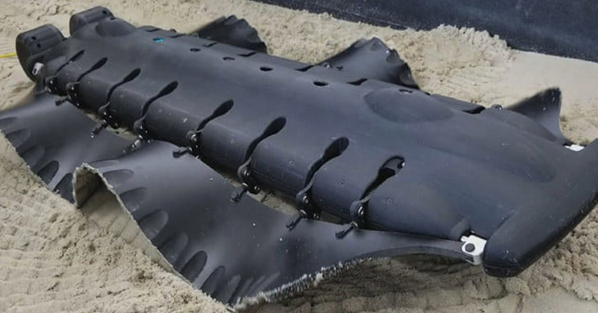 Its official designation is the Agile Amphibious Swimmer, and it first appeared at the 2017 Naval Future Force Science and Technology Expo in Washington, D.C. What’s special about it is that its undersea mode is not driven by the usual propeller system, but rather a pair of versatile, undulating fins that glide through the water, acting as both thrust and guidance systems.
