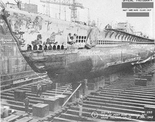 A depth charge-damaged submarine.