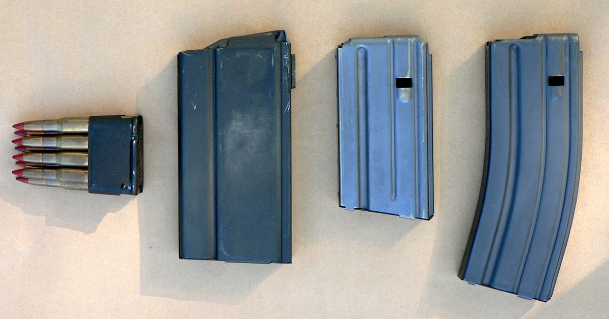 Pop Quiz: Identify the clip/s in the image above. If you pointed to the bullet-holder-thingy on the left, congratulations! You know your weapons. Or you’re gifted at taking stupid tests. Either way, you’ve got a bright future here in America. While people often confuse the terms, clips and magazines serve different purposes. The simple way to think of it is this: the magazine feeds the weapon whereas the clip feeds the magazine. A magazine is what you’re used to seeing in films or loading into your weapon or snuggling with at night.