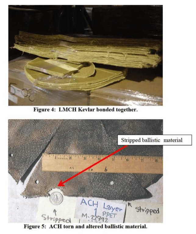 “The investigations found that the ACH and LMCH had numerous defects, including serious ballistic failures, blisters and improper mounting hole placement and dimensions, as well as helmets being repressed,” the report said. “Helmets were manufactured with degraded or unauthorized ballistic materials, used expired paint and unauthorized manufacturing methods.”