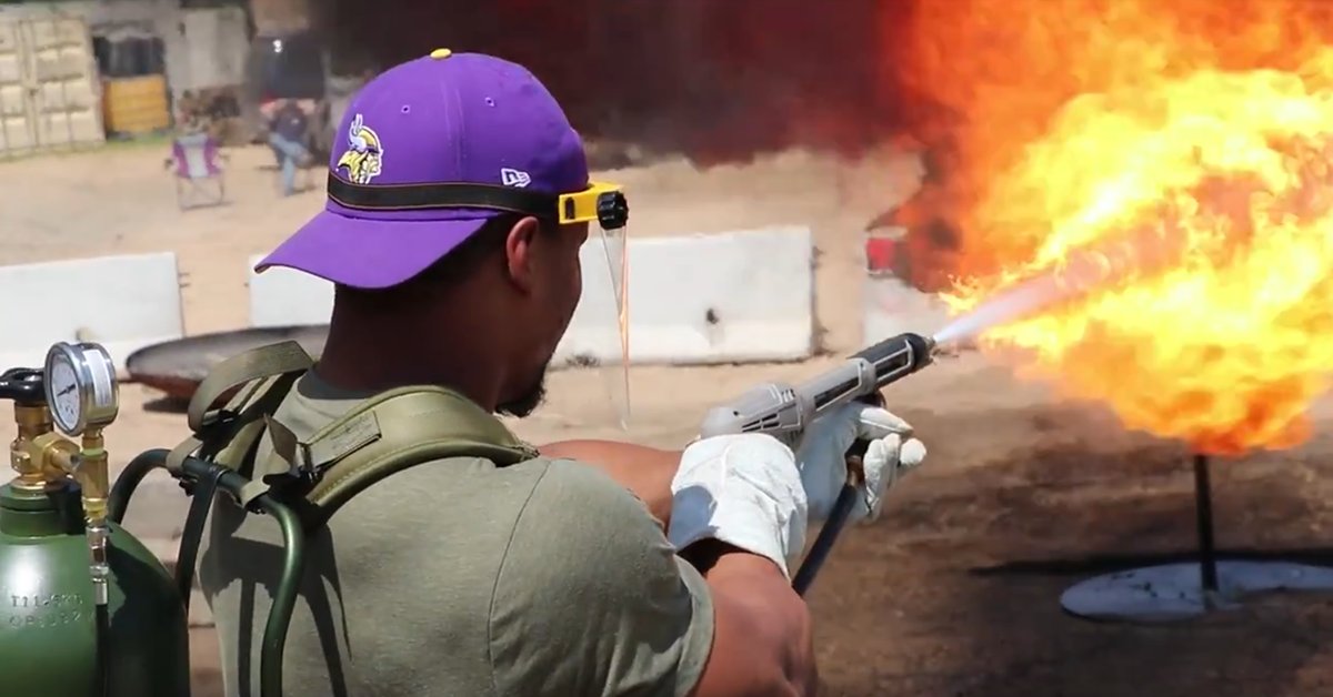 Once the Green Berets have an understanding of the issues facing the team, that’s when they develop a full training plan to turn up the heat — literally — by using flamethrowers. Yeah, you read that right: flamethrowers, because there’s nothing quite like using pressurized-fuel weapons to build trust among teammates.