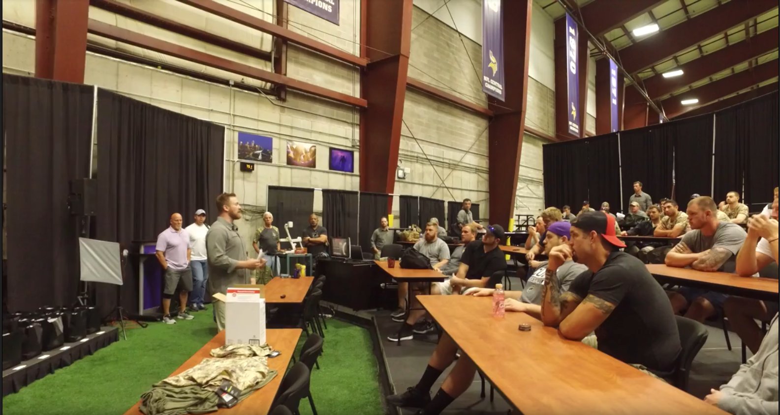 Jason briefs the Minnesota Vikings on there next training exercise.