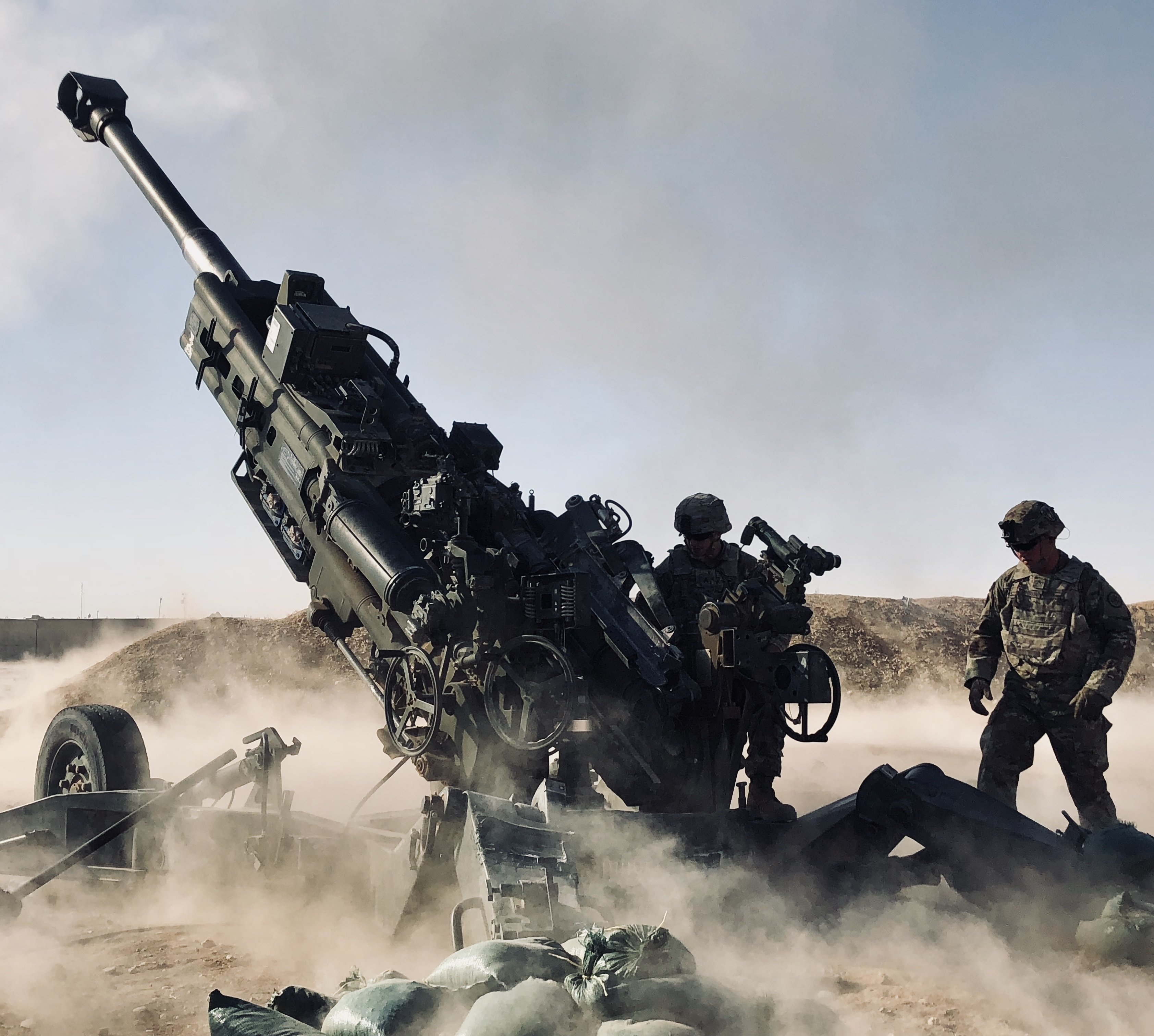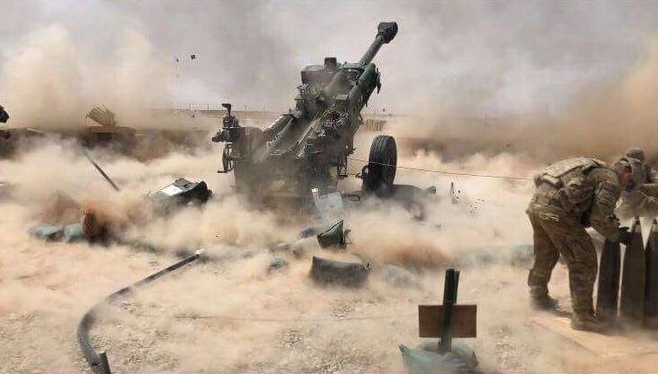 Troopers from the Field Artillery Support Squadron “Steel,” 3d Cavalry Regiment “Brave Rifles,” support Iraqi army operations with artillery fires from their M777A2 Howitzers, Aug. 12, 2018