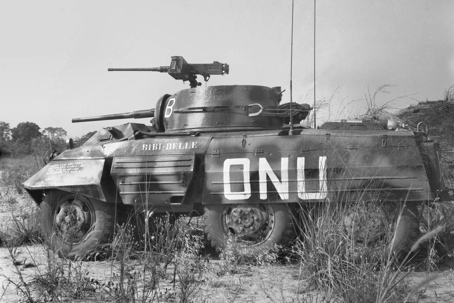After World War II, the Greyhound was widely passed on, including to private sellers. This M8 was captured by Swedish troops in the Congo.
