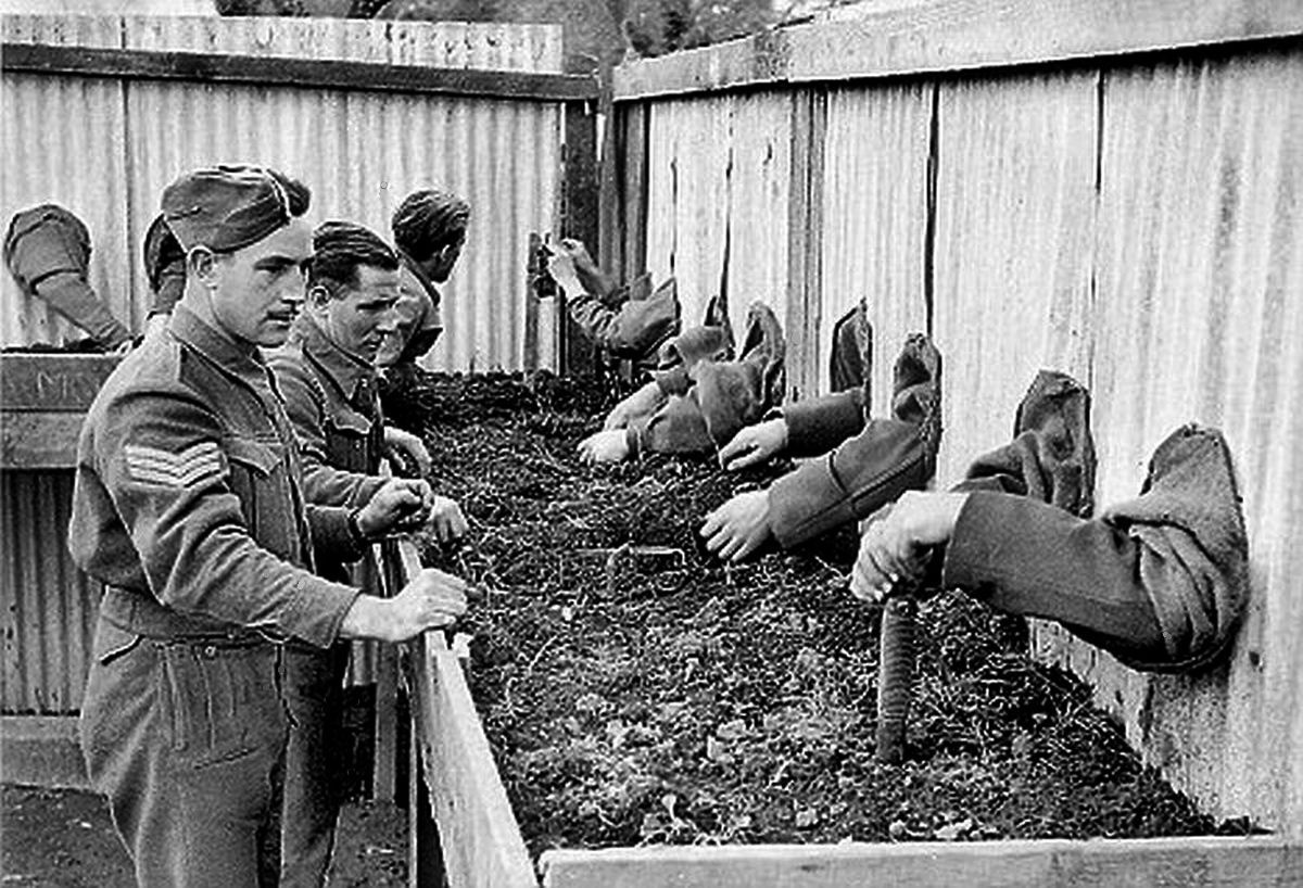 In World War II, there wasn’t always a metal detector around. Sometimes, troops had to get down and dirty, literally. In areas where land mines were suspected, soldiers would get down on the ground, with their heads and bodies close to the ground and – without any kind of warning or hint of where mines might be, if there were any at all – poke into the ground at a 30-degree angle.