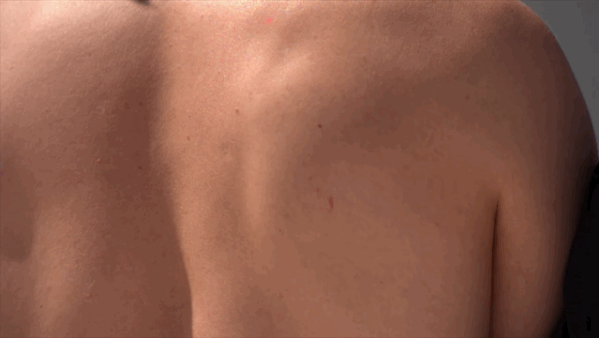 Watch his muscles contract from the point of impact to the rest of his back like a water rippling in a pond after a stone is tossed in.