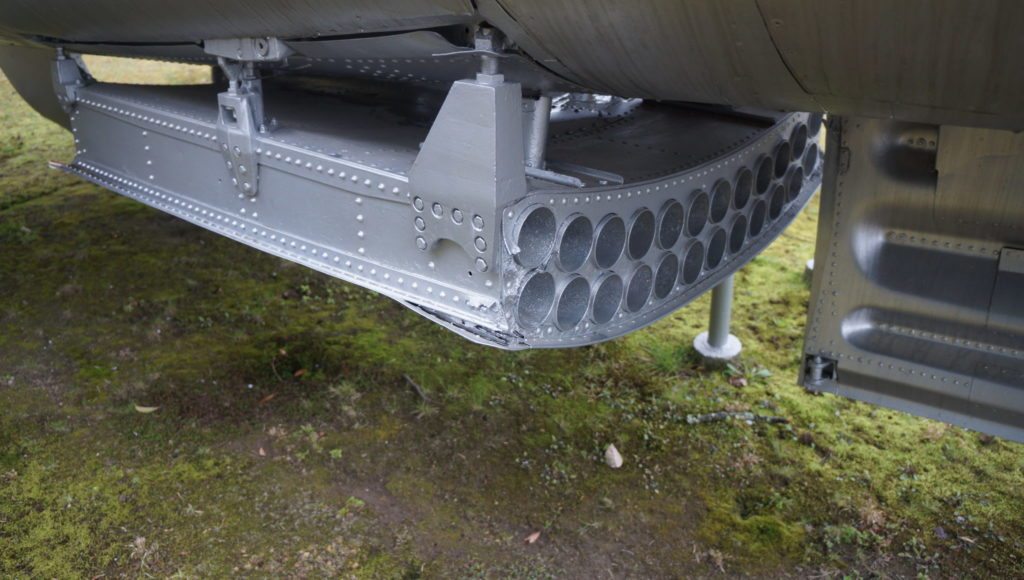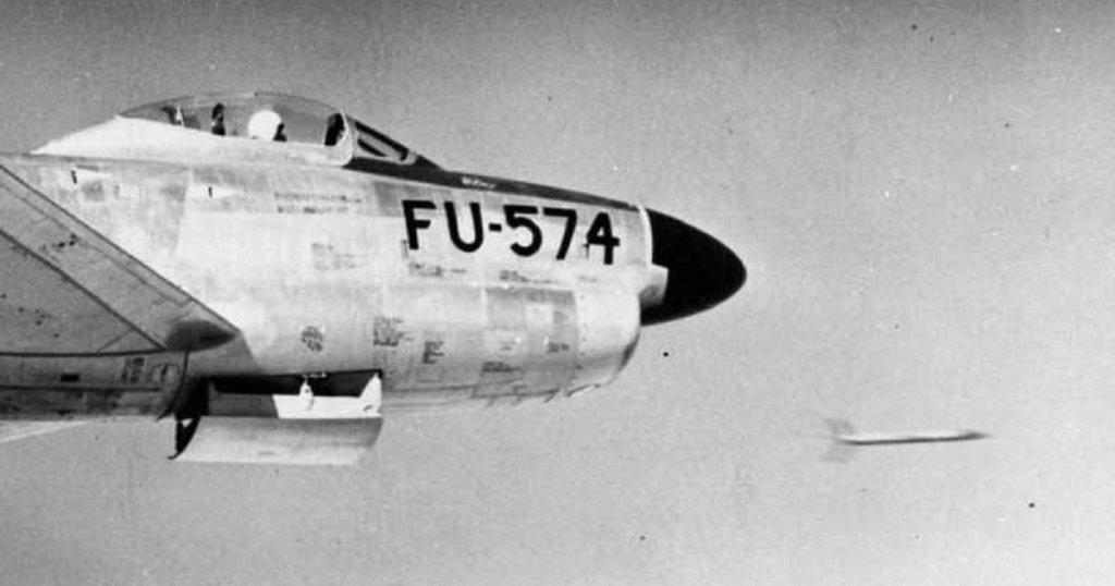 According to aviation historian Joe Baugher, the goal was to create an all-weather interceptor that had a single pilot, as opposed to a two-man crew. The plane was first called the F-95 since it didn’t have many parts in common with the F-86A but, in 1950, the Air Force changed the designation to F-86D. The six M3 .50-caliber machine guns onboard the F-86A were replaced with a pack of 24 2.75-inch “Mighty Mouse” rockets. A pilot had the choice of firing 6, 12, or all 24 rockets at an enemy bomber in a single salvo.