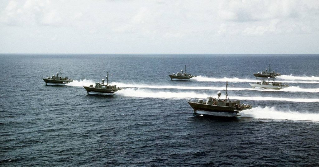 Meet the Pegasus-class missile-armed patrol hydrofoil. They were 255 tons. They could go up to 48 knots. They had a 76mm Mk 75 gun and eight RGM-84 Harpoon anti-ship missiles.