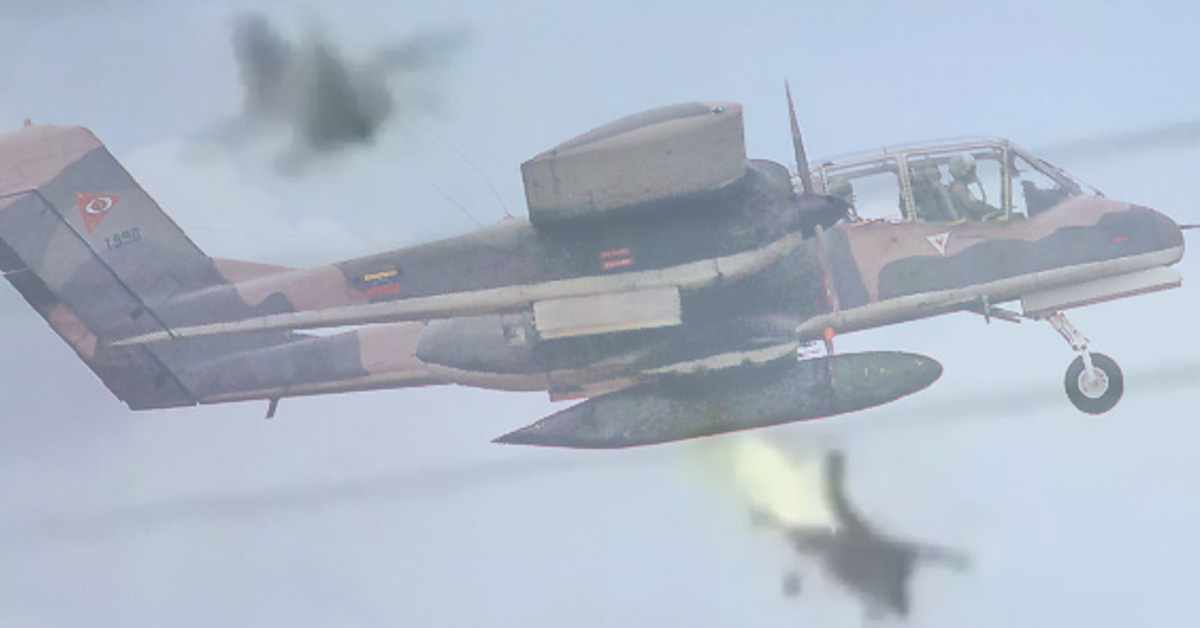 The video above shows a government F-16 turning into the Bronco before hitting its speed brakes and firing its 20mm cannon. The burst sent the OV-10 down in flames. There’s another angle of the dogfight, taken by a local news crew.