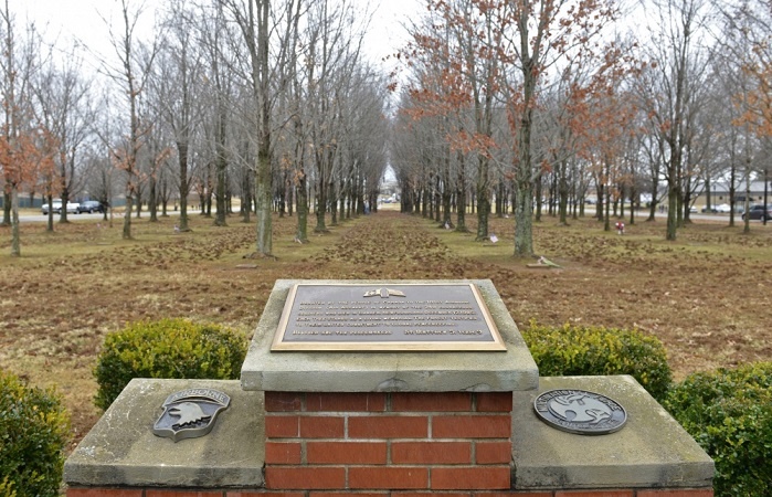 This horrific plane crash resulted in single largest loss of life the 101st Airborne Division (Air Assault) has ever endured and December 12th has since been a solemn day at Fort Campbell. The citizens of Gander donated a sugar maple tree for each life lost, planting a total of 256 trees in Kentucky in their honor. The trees stand in formation, each before a plaque bearing the name of a fallen soldier. For more than thirty years, this memorial has remained in the median separating Airborne Road.
