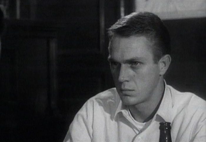 Screenshot of Steve McQueen in film The Great St. Louis Bank Robbery (1959).
