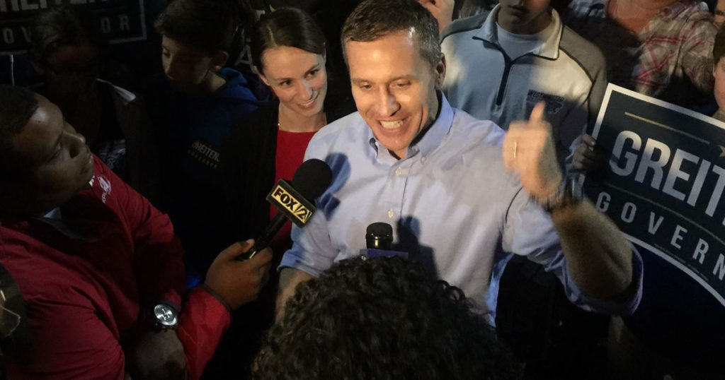 “We’re going to take on the special interests and clean up Jefferson City,” Greitens said in his victory speech as recorded by the Kansas City Star. “Our mission in this campaign was to build a stronger and better Missouri we can take in a new direction.”
