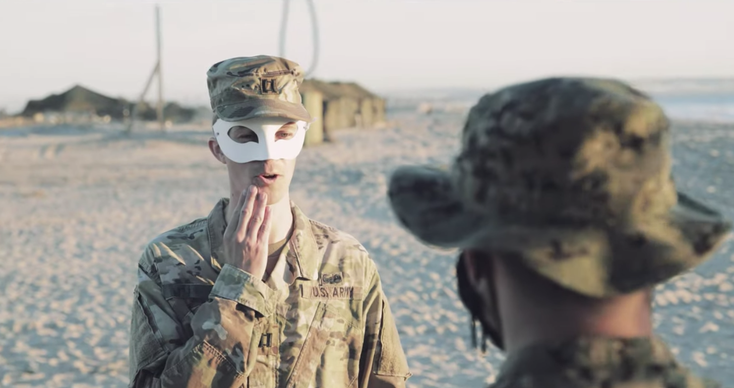 Clearly, the Army can’t quite get it together to, well, do, anything. Take, for example, the captain who doesn’t realize he’s supposed to wear a mask over his mouth and instead wears it around his eyes. Maybe he thinks he’s going to a costume ball? Or perhaps he’s trying to hide the fact that he’s in the Army at all?