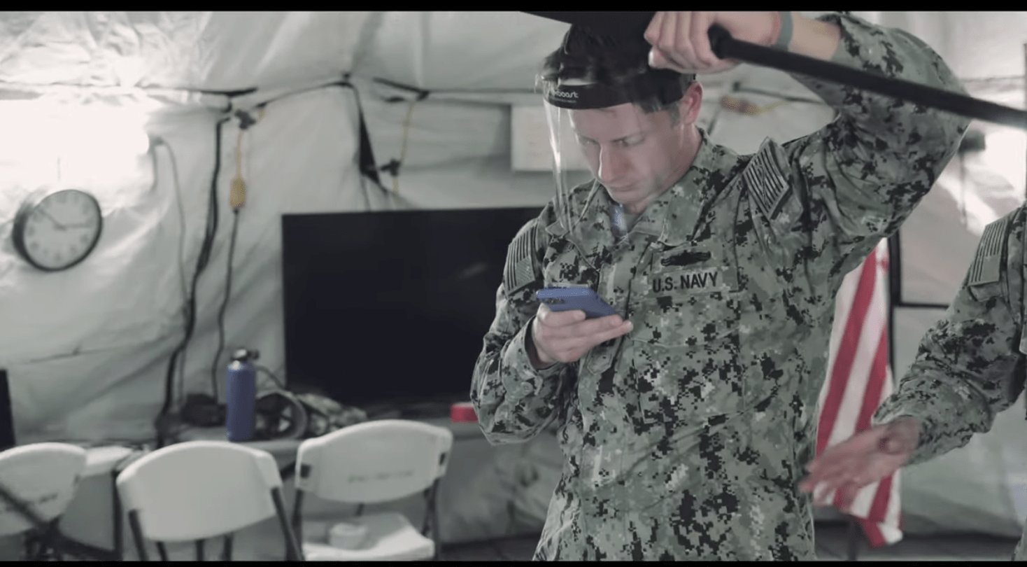 Monitoring symptoms – especially temperature checks – is a critical component of stopping the spread of COVID. The Navy seems to be able to handle that something, but the Army just can’t get together, illustrated by a soldier who takes his mask off to show just how “hot” he really is.