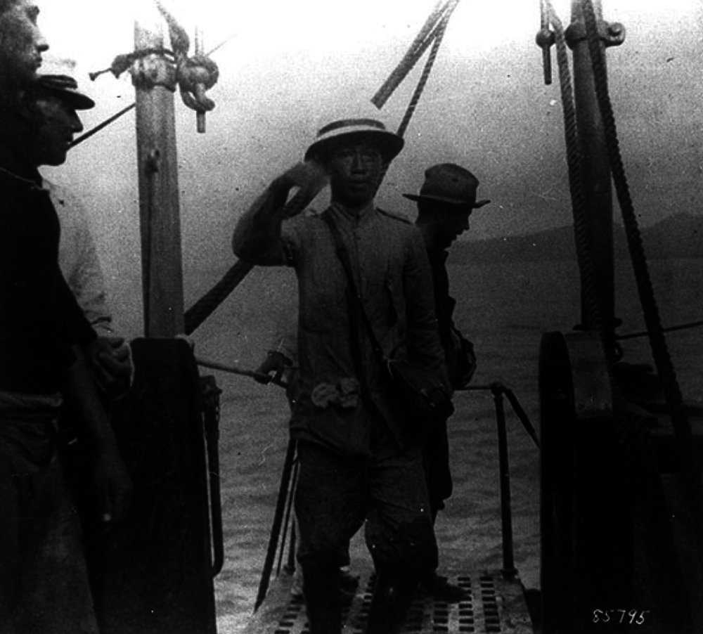 Filipino insurgency leader Emilio Aguinaldo reports aboard the USS Vicksburg as a prisoner of war.
