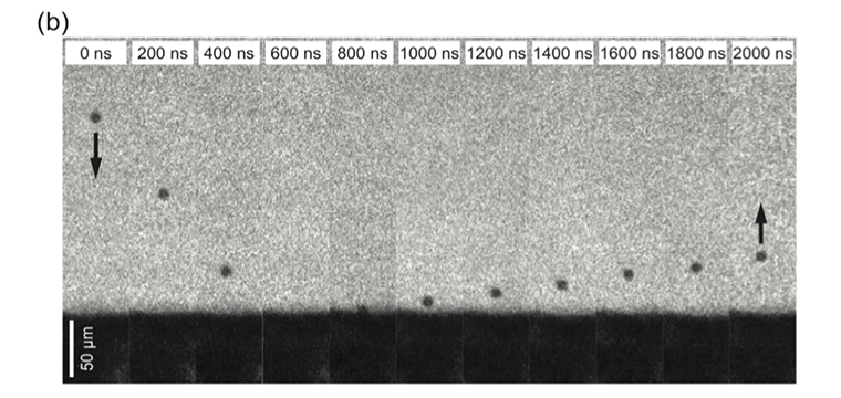This is a time-lapse image of a silica particle striking polymer materials. Watching the polymers at this micro-level requires sophisticated equipment, but allows researchers to get a much better idea of how these materials absorb impacts.