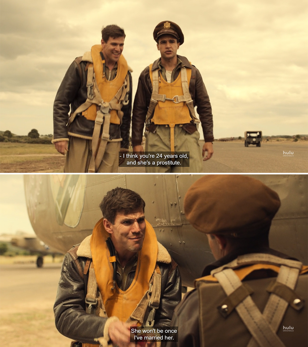 During one of the bombardier’s missions, he almost gets his “million dollar wound,” the one that would let him go home. Slight spoiler: He’s hit in the nuts by flak. As the American doctor later explains, any man who gives up a nut for his country is entitled to go home. But any man who almost loses a testicle has to fly more missions.