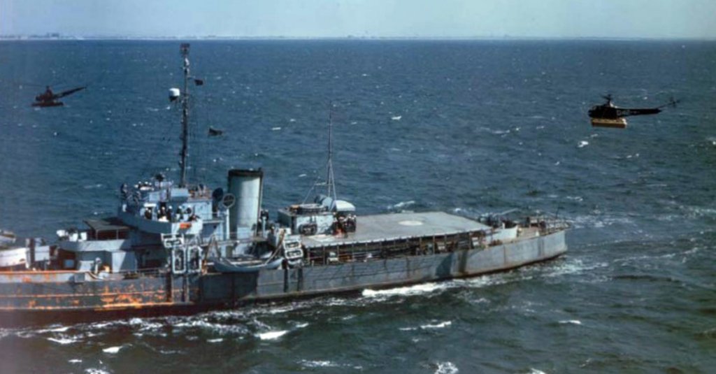 The first sea trials of the helicopter took place just months later with an Army-owned HNS-1 operating from the tanker Bunker Hill. It went well, and the U.S. Coast Guard and Great Britain planned to convert one ship each to a helicopter carrier.