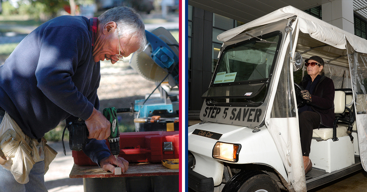 Darlene Neubert, Step Saver carts driver of Wilford Hall Ambulatory Surgical Center on Joint Base San Antonio-Lackland, Texas, prepares to go out to WHASC’s parking areas to pick up patients. Around the military and veteran community, volunteers can make a big difference in terms of what medical care patients can receive.