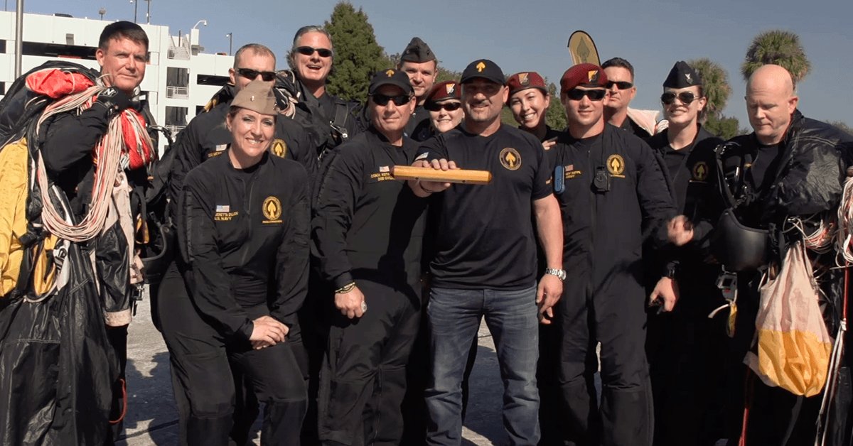 Fox Sports host Jay Glazer interviews SOCOM Para-Commandos as they prep for a jump into Raymond James Stadium, home of the Tampa Bay Buccaneers. These professionals train day after day, jump after jump, to perform better as a team and execute with precision.