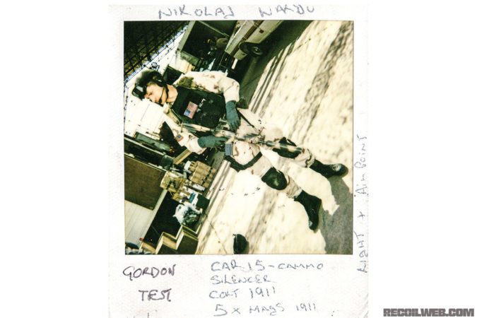 After receiving the M16s, Atherton’s team converted many of the ex-Guatemalan Colt M16A2s into CAR-15s. The Gordon CAR-15 blank-firing prop is the most iconic weapon in the film. Chris Atherton, Simon Atherton’s son and Zorg employee, was able to immediately locate the last known surviving Gary Gordon hero blank-firing prop CAR-15.