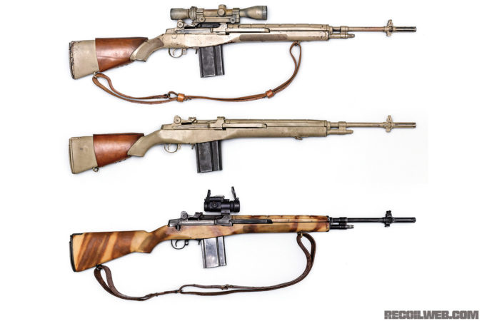 Gibbons sold the eight MDL.M1As to Independent Studio Services in 2008 or 2009. The ISS armory staff indicated that it was likely that the two tan weapons were used as the hero props in filming. Photo analysis by William DeMolee indicates that it is likely that the top MDL.M1A, which is equipped with a Leatherwood scope, was the hero prop used in close-ups. The live-fire replica was painted to match onset production photos and screenshots by Augee Kim.