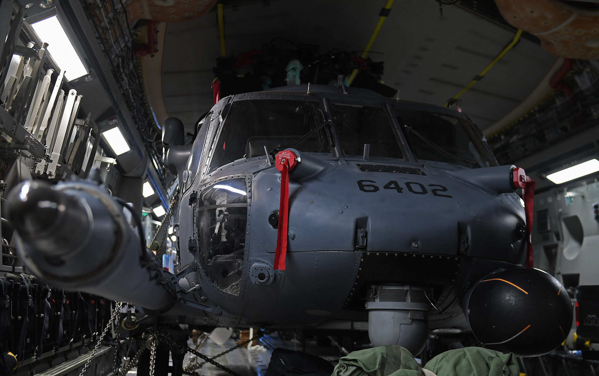 You may be surprised, but the HH-60 is actually an easy cargo for one of these planes to carry. It comes in at 22,000 pounds — or 11 tons. The C-17 can carry over 170,000 pounds of cargo, per an Air Force fact sheet. The C-5 carries over 281,000 pounds. With weight out of the way, the only remaining issue is volume — and the HH-60 addresses that with folding rotor blades.