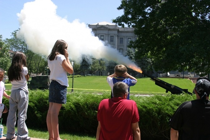 Every year, on the fourth of July, military installations hold a ceremony at noon where they fire off one gun for every state in the Union. Some of the veterans who once participated in those ceremonies come back many years down the road to see it again.