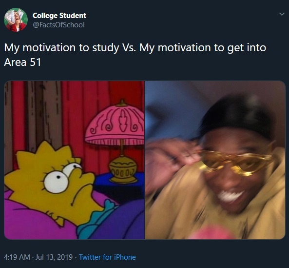 Put simply, this meme perfectly represents the entire subject… a bunch of college students that would much rather plan a hypothetical raid on a secret military installation than study for whatever their next exam is. Maybe this is telling about us writers too… a bunch of internet journalists that would rather write about college students planning a raid on Area 51 than focus on ongoing conflicts in the… eh, never mind.