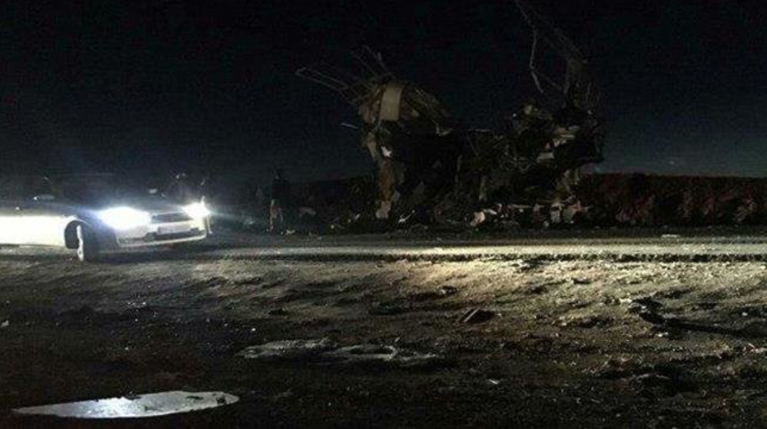 The remnants of an IRGC bus after an explosives-laden car rammed it on Feb. 13.
