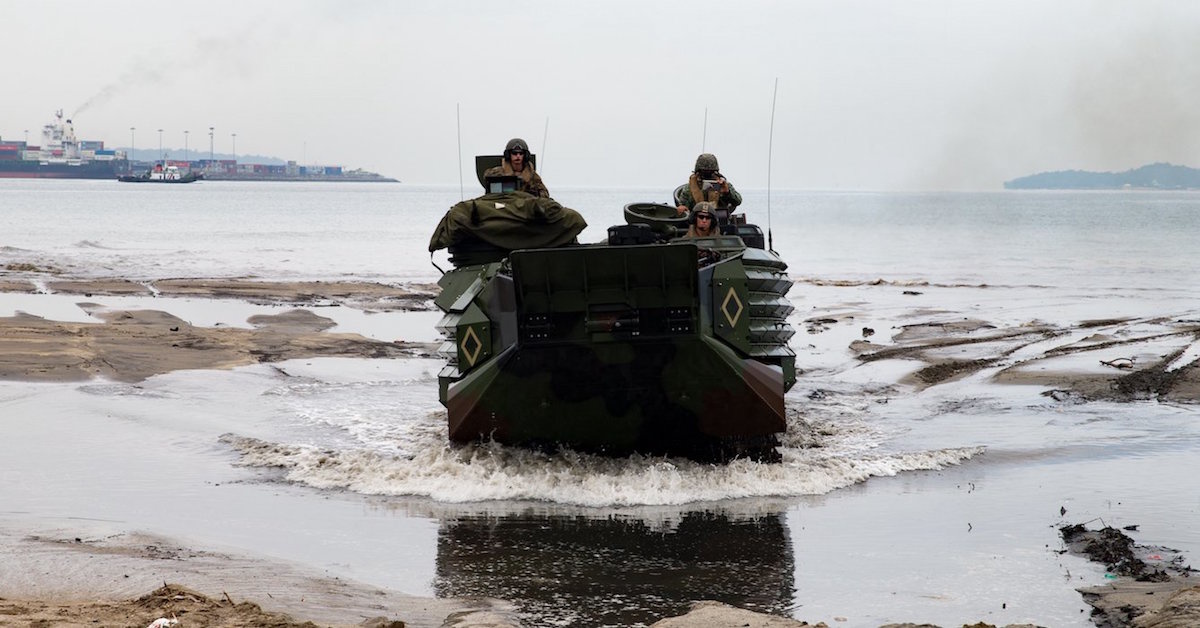 A small contingent of Japanese troops and armored vehicles engaged in military exercises with the US and the Philippines in the Philippines on Oct. 6, 2018, assisting in a humanitarian role during an amphibious exercise simulating recapturing territory from a terrorist group.