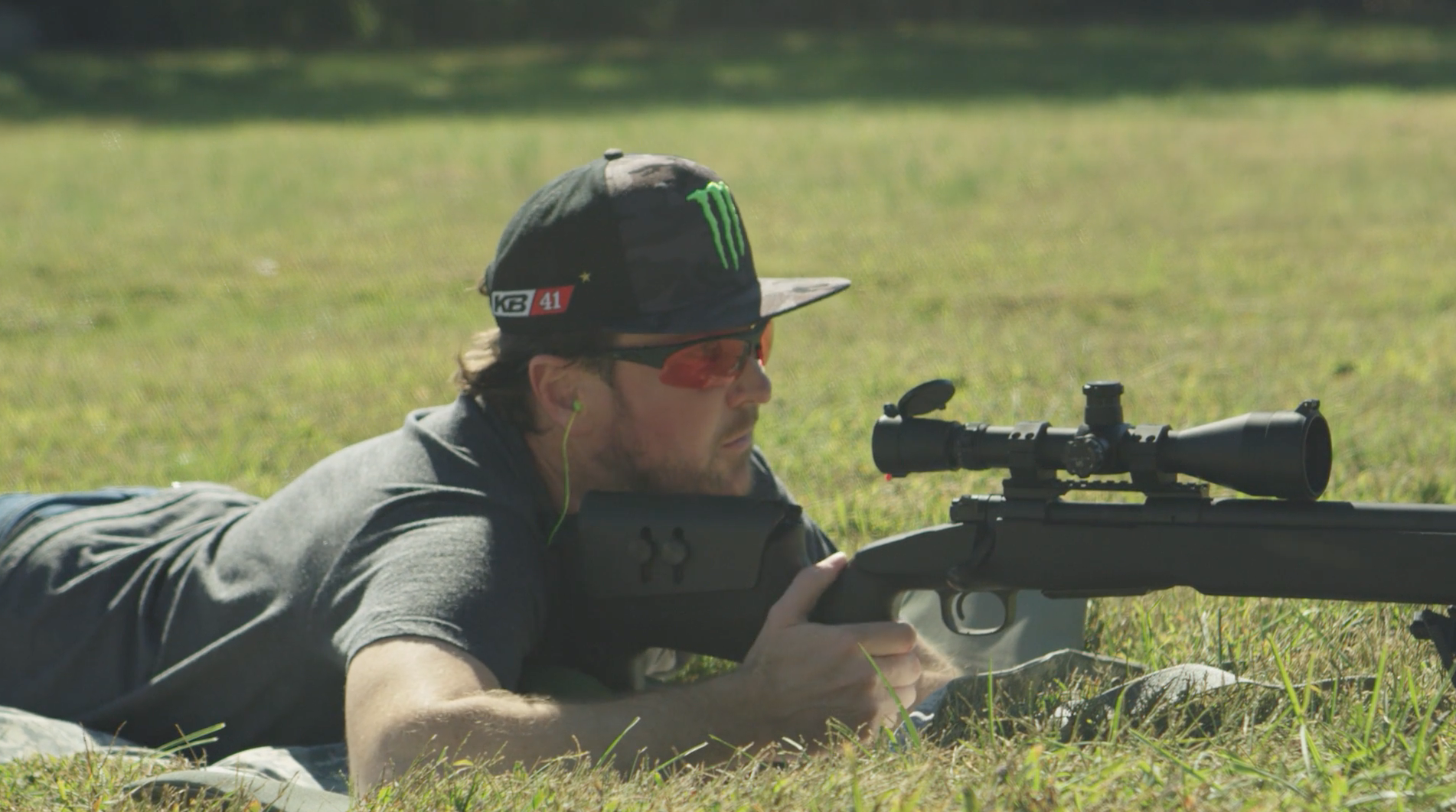 Glover recently took NASCAR’s Kurt Busch to the shooting range to teach him how to shoot a sniper’s rifle using a spotter. Busch, who drives the #41 Monster Energy Ford, quickly took to Glover’s instructions.